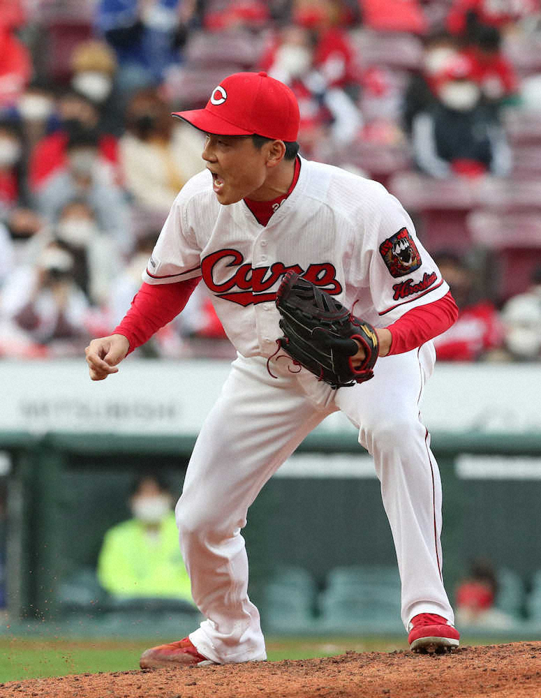 9回に登板した栗林は木下拓、根尾をカットボールで2者連続の空振り三振に仕留めるなど3者凡退。勝負球のフォークを1球も使わず、「しっかりと準備した状態でいけた。石原がカットボールの調子がいいと思って配球してくれたのだと思う」と振り返った。
