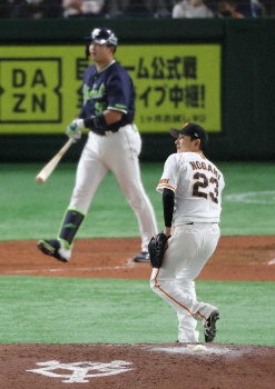 19年秋に左アキレス腱断裂の大ケガから復帰した野上は、脚部違和感で3月30日に出場選手登録を抹消された菅野の代役として登板。先頭の山崎に対して注目の第1球は142キロ直球。外角高めに外れてボールだったが、2球目以降スライダー、カーブ、スライダーと変化球を続けて山崎を一直に仕留めた。続く中村は左飛で簡単に2死を奪った。山田哲は三塁・岡本和の失策で出塁を許したが、村上には内角を強気に攻め、最後は真ん中高めの145キロ直球で空振り三振に斬った。