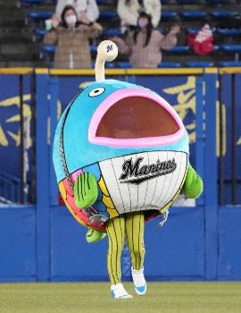 ロッテの公式キャラクター「謎の魚」が5回終了後、最終形態へと進化。「桜が舞い散り、いよいよ私は最終形態に進化を遂げます。皆さん、見てちょ。グフフフ」と予告していた姿は、頭が「魚」そのものという、まさかのスタイル。さらにマスコットながらマイクを持って「サンキュー!」と言葉を発し、球場をざわつかせた。謎の魚は17年に登場し、第五形態まで進化していた。
