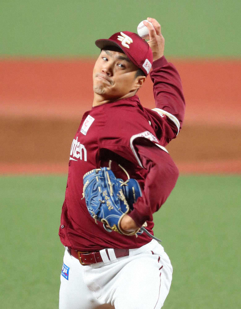 今季初先発となった3月31日のロッテ戦で6回1/3、4安打1失点の好投で今季初勝利を挙げて以来の登板となった則本昂。1―0と味方の援護をもらった初回はわずか7球で3者凡退に抑え、2回も中村、木村から2者連続三振など無安打で抑えた。2―0となった3回は先頭の若林にこの試合初安打を打たれて出塁を許す。さらに2死一、三塁のピンチを招くが相手のダブルスチールを阻止してピンチを脱出した。