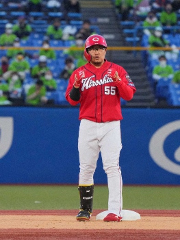 簡単に2死を奪われたから西川が右前打で出塁すると、4番の鈴木誠が左翼線への二塁打で、二、三塁と好機拡大。ここで開幕から勝負強さが目立つ松山が、右中間へ先制の2点適時二塁打を放った。松山は「大振りせずにコンパクトに打つことができました。初回から先制することができてよかった」と喜んだ。