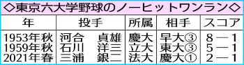 東京六大学野球のノーヒットワンラン Photo by スポニチ 62年ぶり珍記録!法大・三浦が“ノーヒットワンラン” 東京六大学、2年ぶり… ギャラリーで見る この記事のフォト 2021年04月11日の画像一覧 もっと見る 2021年04月11日の画像をもっと見る