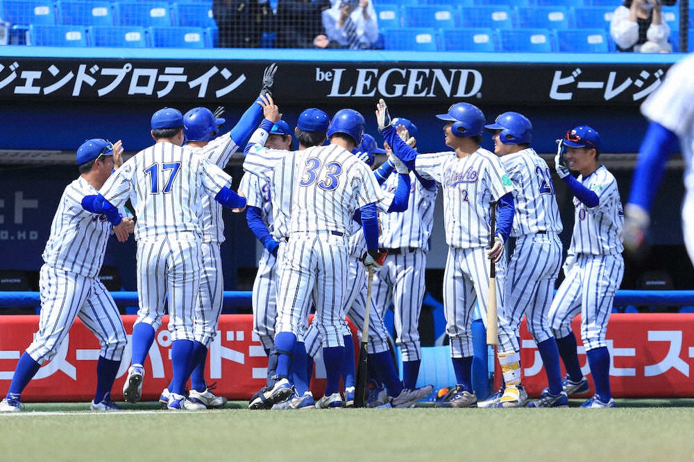 坂田精二郎監督が「ベンチのファインプレー」と評価したのは2回の守備だった。1―0の2死一塁から右翼線二塁打を許し一塁走者が生還し同点に追いつかれた。だが、三塁ベンチから「ベースを踏んでいない」と声が上がり、捕手の中嶋良平(4年)がアピールし、走者が本塁空過でアウトになった。中嶋は「自分は見ていなかったが、周りの声で」と感謝。坂田監督は「こっちに運もあったのかなと思う」と話した。