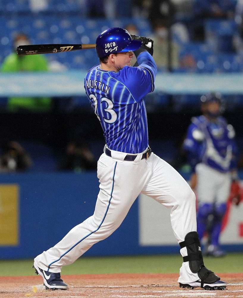 ともにスタメンを外れて迎えた8回、4点を追う1死無走者の場面でオースティンが代打で登場。カウント3―1から139キロの直球を痛烈に中前に運んだ。今季初打席で初安打を放った。