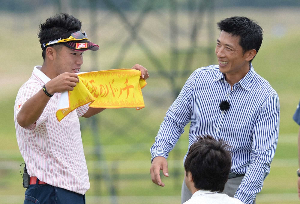 ○…矢野監督は評論家時代の13年6月25日に、東北福祉大の後輩にあたる松山英樹と対面。同27日から始まるミズノオープンに備えてコース入りした松山をテレビの取材で訪れ「必死のパッチ」の文字が入ったタオルをプレゼントしている。