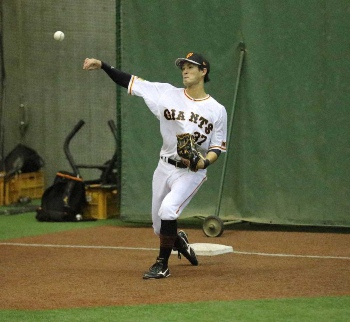 都内の病院から退院し、ジャイアンツ球場で練習する巨人・丸(読売巨人軍提供)