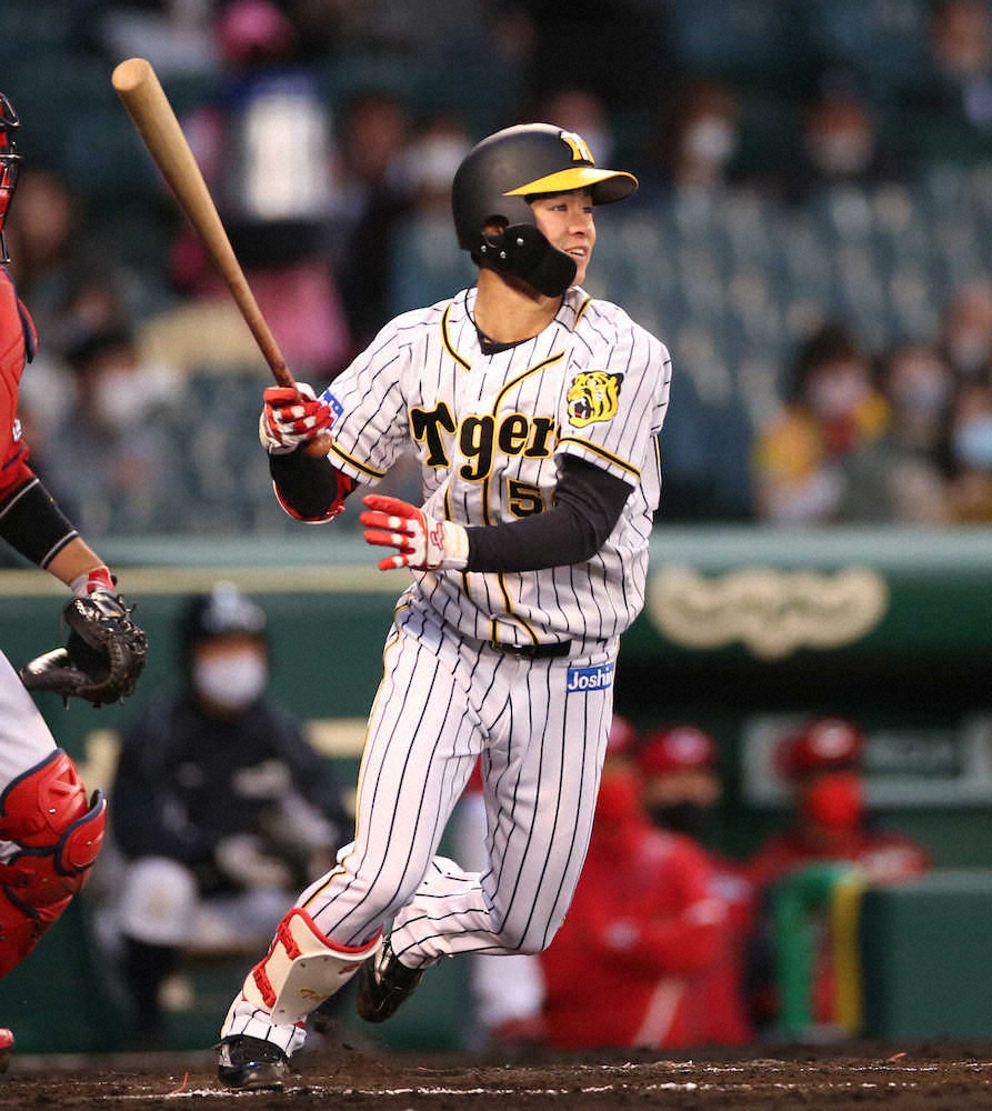 スコアレスで迎えた2回。2死から佐藤輝の四球と相手の失策で作った一、二塁の好機で3球目の151キロ直球を振り抜いて右前に運び、二塁走者の佐藤輝を迎え入れた。