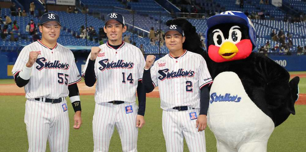 <ヤ・D>初回2死、右越えソロを放った村上を迎える中村(左から3人目)(撮影・会津 智海) Photo by スポニチ ヤクルト・村上 リーグ単独トップ7号ソロで3連勝貢献!16日からは阪神戦「… ギャラリーで見る この記事のフォト 2021年04月15日の画像一覧 もっと見る 2021年04月15日の画像をもっと見る