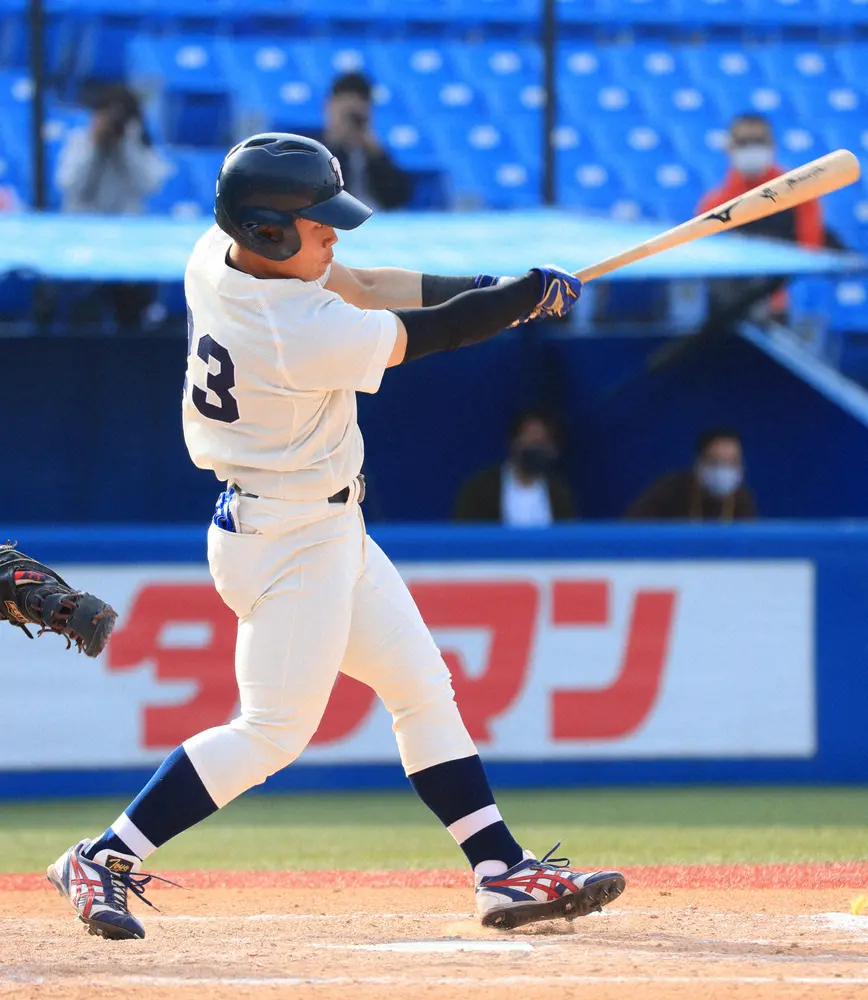 東洋大が接戦を制した。0―1の7回1死一、二塁の場面で代打で起用された花咲徳栄出身の橋本吏功外野手(2年)が左翼席へリーグ戦1号となる3ランを叩き込んだ。「左投手が来たら代打と言われていたので、1球で仕留めることだけを考えていった」と喜んだ。