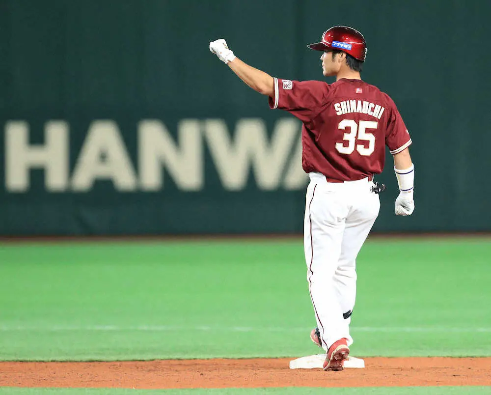 楽天が0―1の3回、島内宏明外野手の中越え適時二塁打で同点とした。