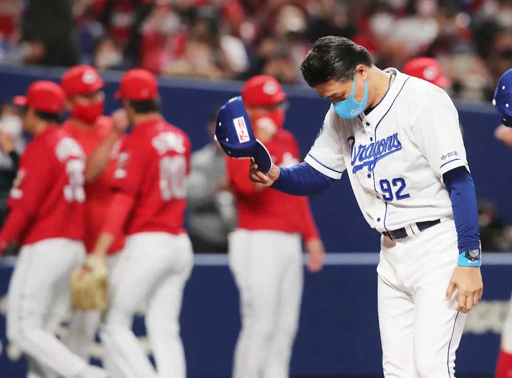 痛恨の逆転負けで今季初の連勝はならず、借金は今季最多タイの5に逆戻り。首位・阪神とのゲーム差は、今季最大の8にまで広がった。与田剛監督(55)は2―1の8回に3失点を喫した3番手・祖父江の投球を「やはり1イニングに、四球2つはキツかった。ボールカウント先行が、こういう結果にもなったのかなと思います」と冷静に振り返った。