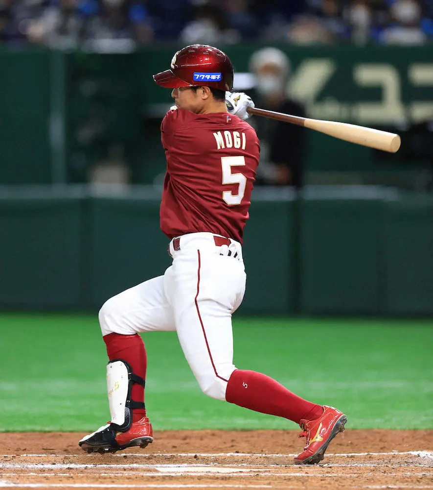 <日・楽>3回、適時打を放つ茂木(撮影・白鳥 佳樹)