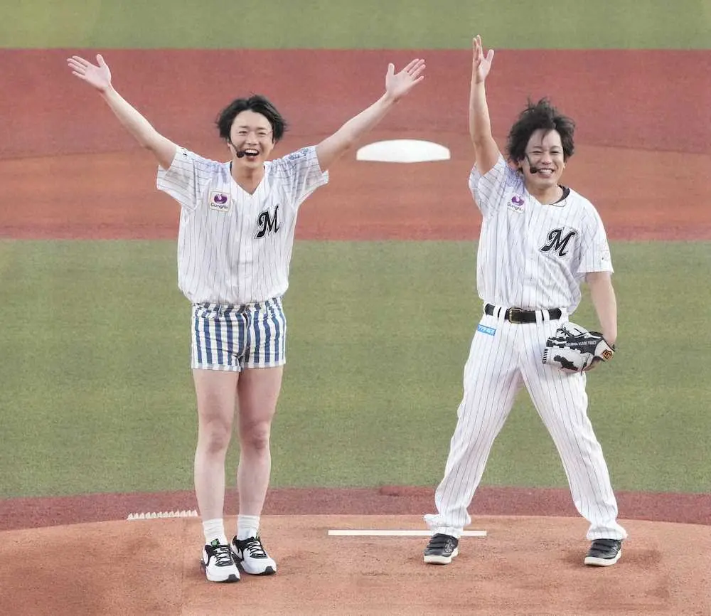 <ロ・日>始球式に登板した「ぺこぱ」松陰寺太勇(撮影・白鳥 佳樹) Photo by スポニチ ロッテファン・ぺこぱが始球式 山口のハーフスイングに「時を戻そう」と… ギャラリーで見る この記事のフォト 2021年04月20日の画像一覧 もっと見る 2021年04月20日の画像をもっと見る