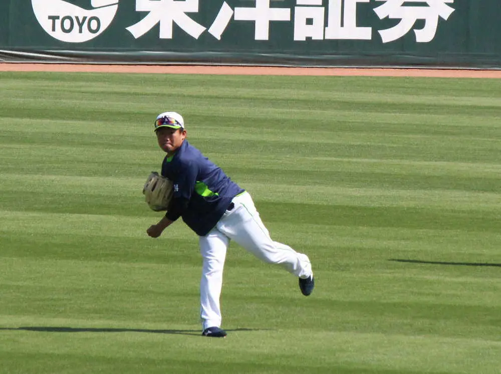 マツダスタジアムで調整するヤクルト・田口