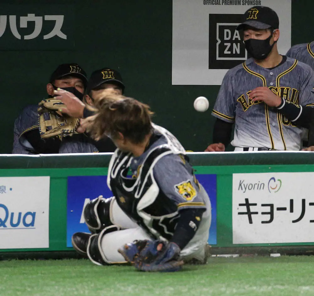 <巨・神(6)>2回裏の守備を終えてベンチ裏に下がる梅野(手前)を見つめる矢野監督(撮影・北條 貴史) Photo by スポニチ 阪神・梅野にアクシデント発生か? 3回、チャンスの打席で代打送られる ギャラリーで見る この記事のフォト 2021年04月22日の画像一覧 もっと見る 2021年04月22日の画像をもっと見る