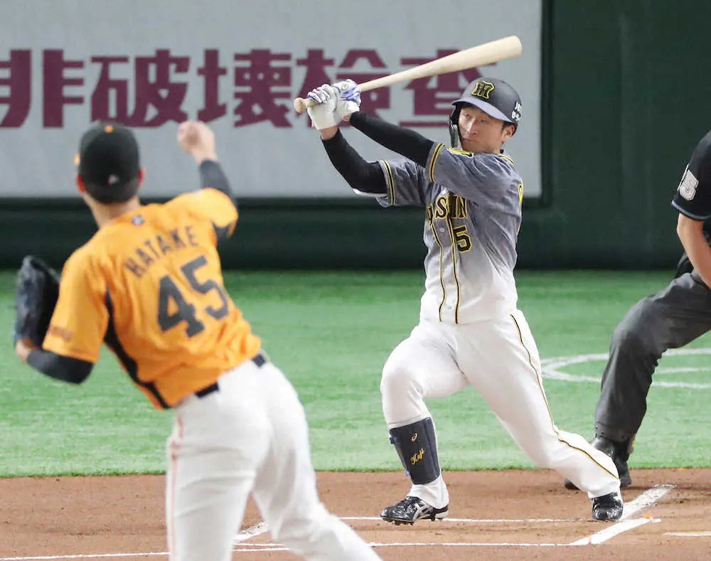 神話は崩れても、打った事実まで消えるわけではない。プレーボールから40秒。近本が快音を響かせた。