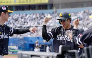 <ロ・ソ5>2回2死一、三塁、栗原の右前打で生還した三走・柳田(右)は高橋礼の出迎えに笑顔(撮影・沢田 明徳) Photo by スポニチ ソフトB 天敵美馬から4点奪取!柳田が2点先制打 ギャラリーで見る この記事のフォト 2021年04月24日の画像一覧 もっと見る 2021年04月24日の画像をもっと見る