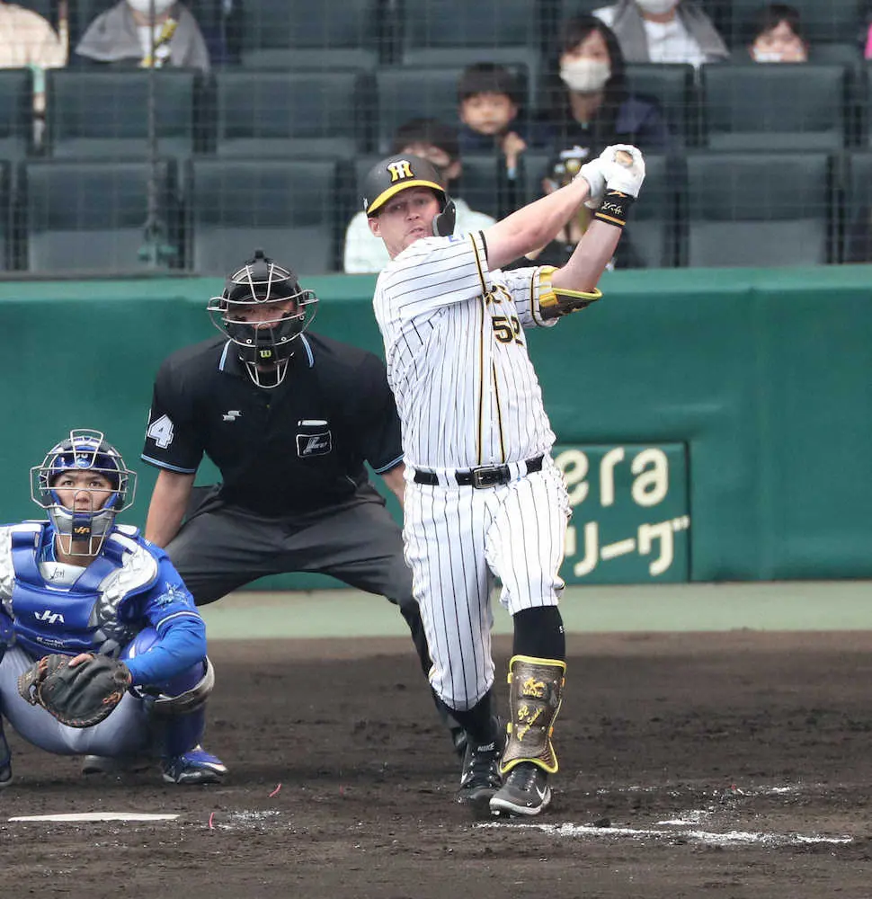 阪神・サンズが7回に勝ち越しの7号2ランを放った。大山の中犠飛で同点に追いつくと、2死三塁から平田の直球を振り抜いた一撃はバックスクリーンへ一直線。