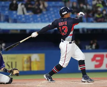 6、7番を担った右の長距離砲2人が競演したのは4回。先頭で村上が右越えソロを放つと、1死後にメジャー通算77本塁打のサンタナが続いた。ライナーで右翼席へ来日1号ソロ。「最高の気分。ファンの前でホームランを打てて、とても気持ちいい」。3試合9打席目で出た初安打がいきなりアーチだ。