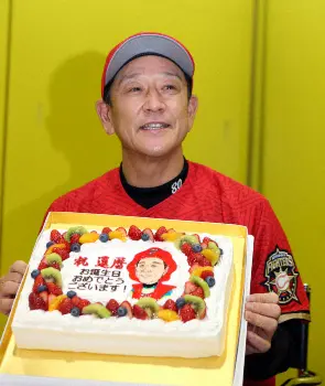 ON、ノムさんに続く。日本ハムの栗山監督が26日に60歳の誕生日を迎え、「還暦シーズン優勝の法則」で16年以来5年ぶりの優勝を狙う。報道陣から似顔絵入りのケーキで祝福された指揮官は、選手から贈られた赤いユニホームと帽子を身につけ「還暦優勝、行くよ」と力強く話した。