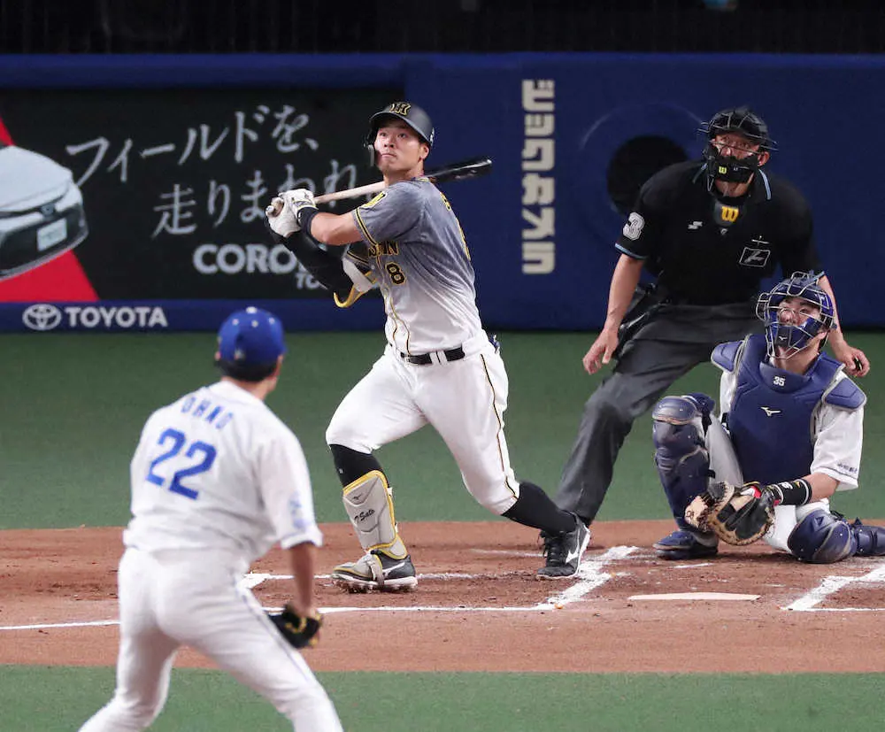 早くも自身2度目の2戦連発。しかもチームが敵本拠地での対戦では13年を最後に黒星を付けることができていない“天敵”との公式戦初対決でいきなりアーチをかけてみせた。これが実は、阪神の左打者が大野雄から放った初本塁打でもあるから価値は増す。井上ヘッドコーチも「森下とか大野とか(から打つ)、そういう星を持っている。確かに素晴らしい一発」と、まな弟子の躍動に目を細めた。