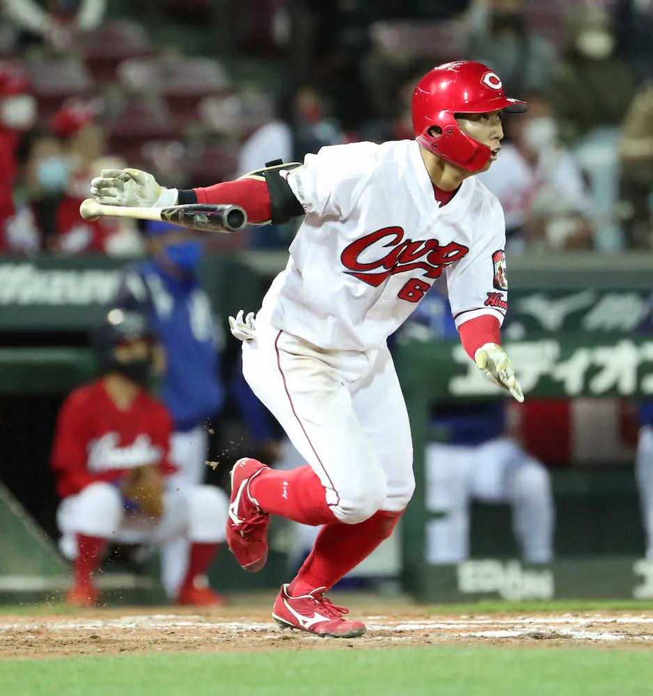先発出場すると、これで4戦連続マルチ安打。佐々岡監督は「バント安打とか2番でいろんな攻撃ができる。打ってもつないでくれる」と目を細める。打ってよし、転がしてよし、バントしてよし。俊足巧打の21歳。大ブレークの予感がする。(江尾 卓也)