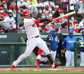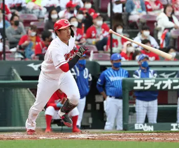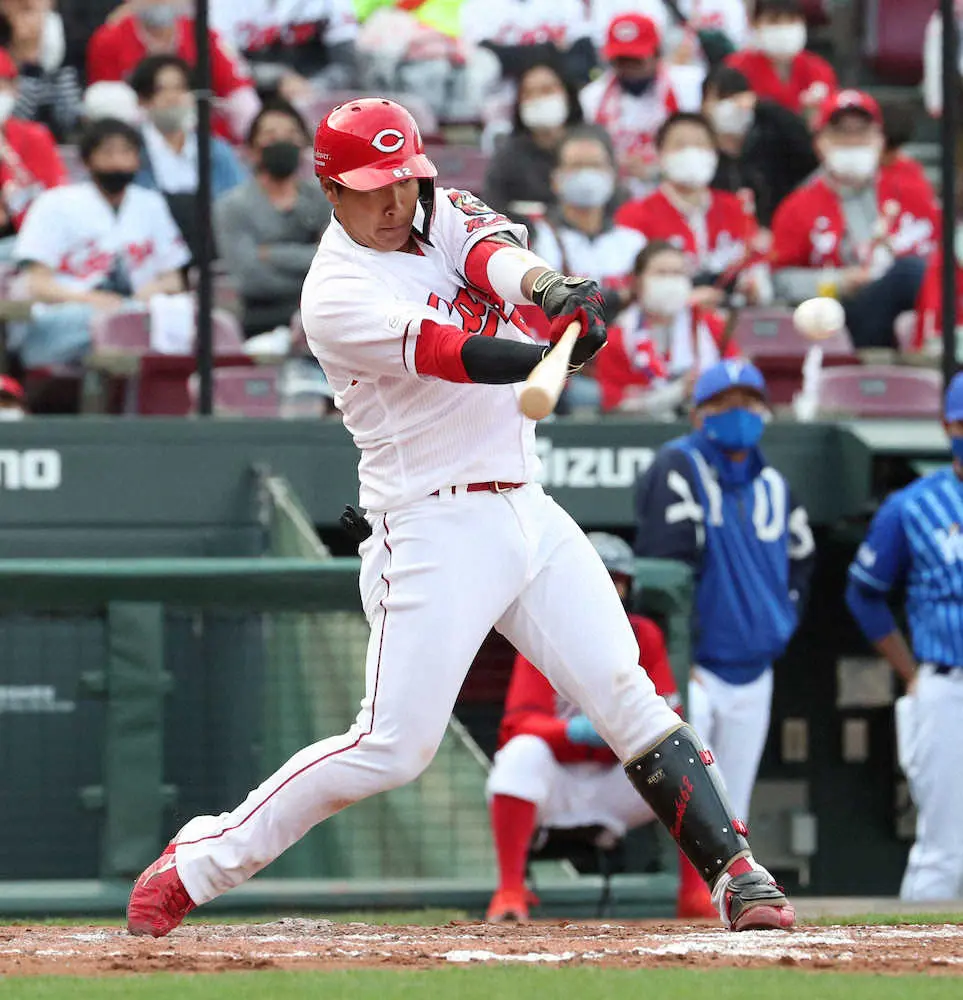 4点を追う7回無死二、三塁。DeNAの先発左腕・浜口の高めのチェンジアップを右前にはじき返し2者が生還。 この日は同じプロ2年目でプロ初登板初先発する左腕、玉村昇悟投手(20)とコンビを組んだが、玉村は5回までに5失点。バットで投手陣を援護すべく食らいついて右前に運んだ。