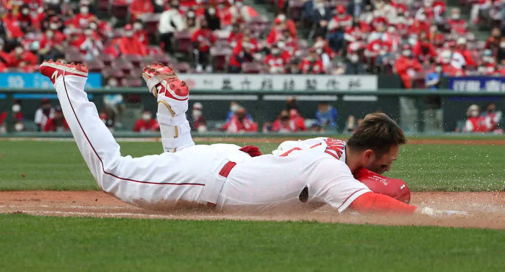 <広・D>1回1死二塁、鈴木誠は遊撃内野安打を放ち一塁にヘッドスライディング (撮影・奥 調) Photo by スポニチ 広島・誠也の“ド迫力”ヘッドスライディング!借金1でもまだまだ!佐々岡監… ギャラリーで見る この記事のフォト 2021年04月30日の画像一覧 もっと見る 2021年04月30日の画像をもっと見る
