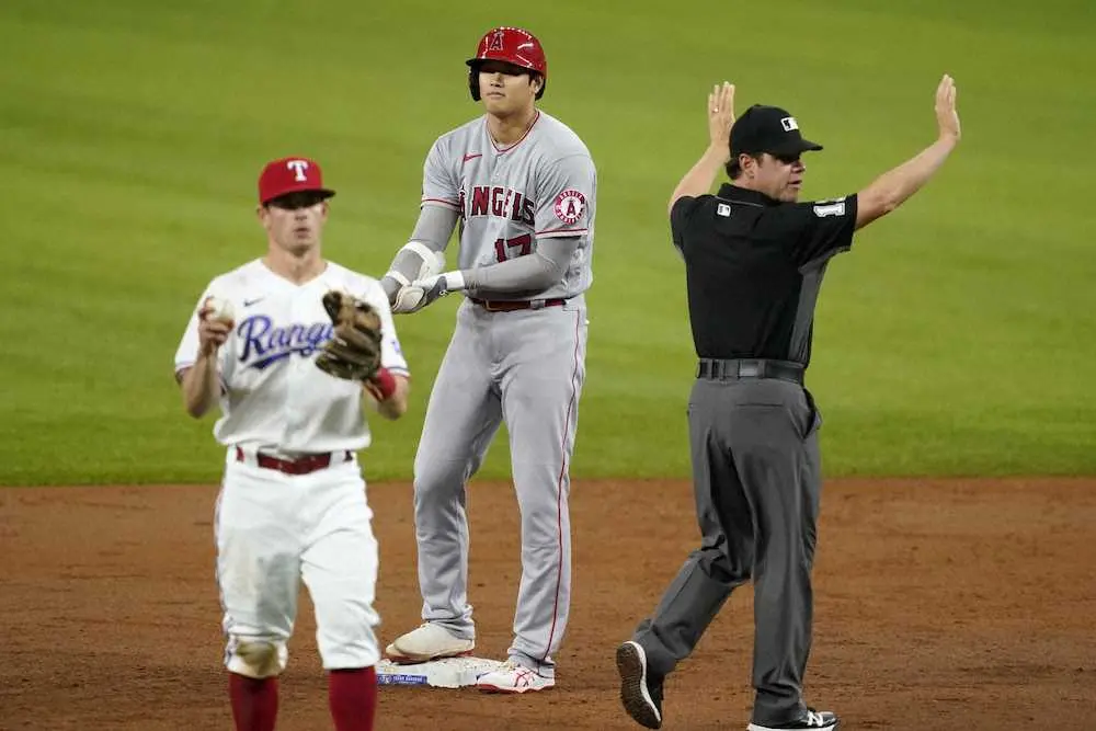 エンゼルスの大谷翔平投手(26)が28日(日本時間29日)、レンジャーズ戦に「2番・DH」で出場し、あとわずかで柵越えだった左翼フェンス上部直撃の二塁打を放った。審判団が自発的にビデオ判定を行うほどの微妙な打球。リーグトップに並ぶ8号アーチとはならなかったが、存在感を発揮してチームの勝利に貢献した。