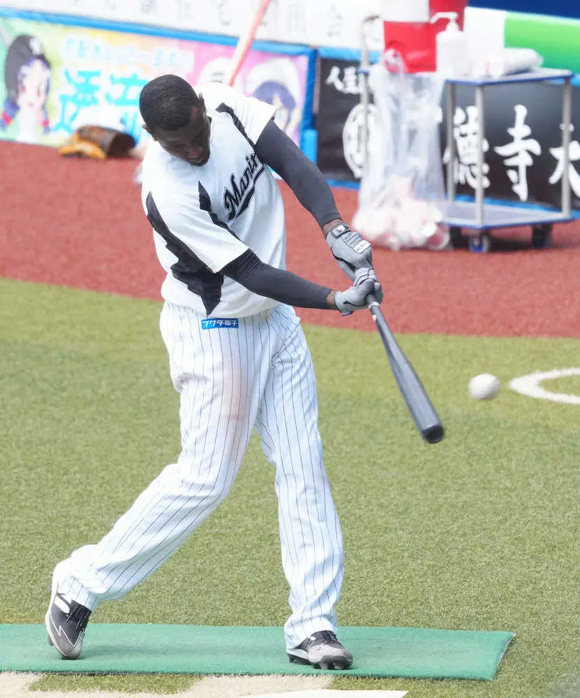 楽天生命パークで行われた楽天戦前の練習ではマーティン、レアードらと談笑しながら、リラックスした雰囲気で練習に取り組んだ。