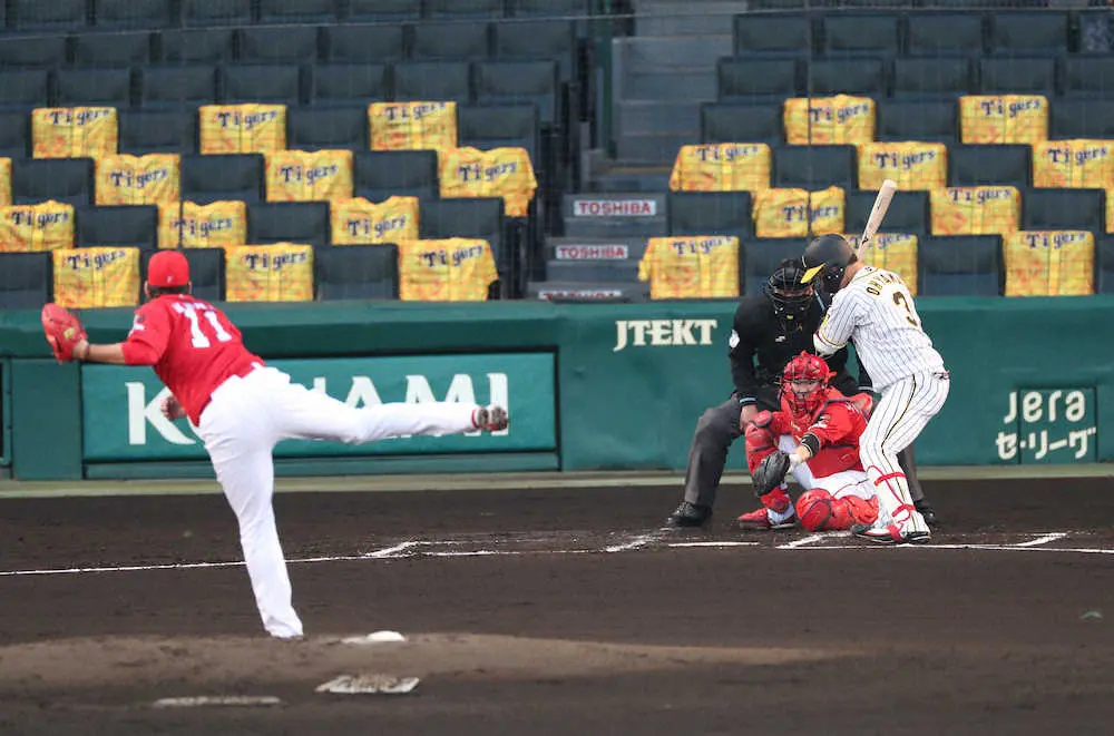 甲子園球場では昨年7月9日以来の無観客試合だった。静かな場内のなか、1つボール球を選ぶ度に阪神ベンチから歓声が響いていた。選球をたたえる空気を感じた。