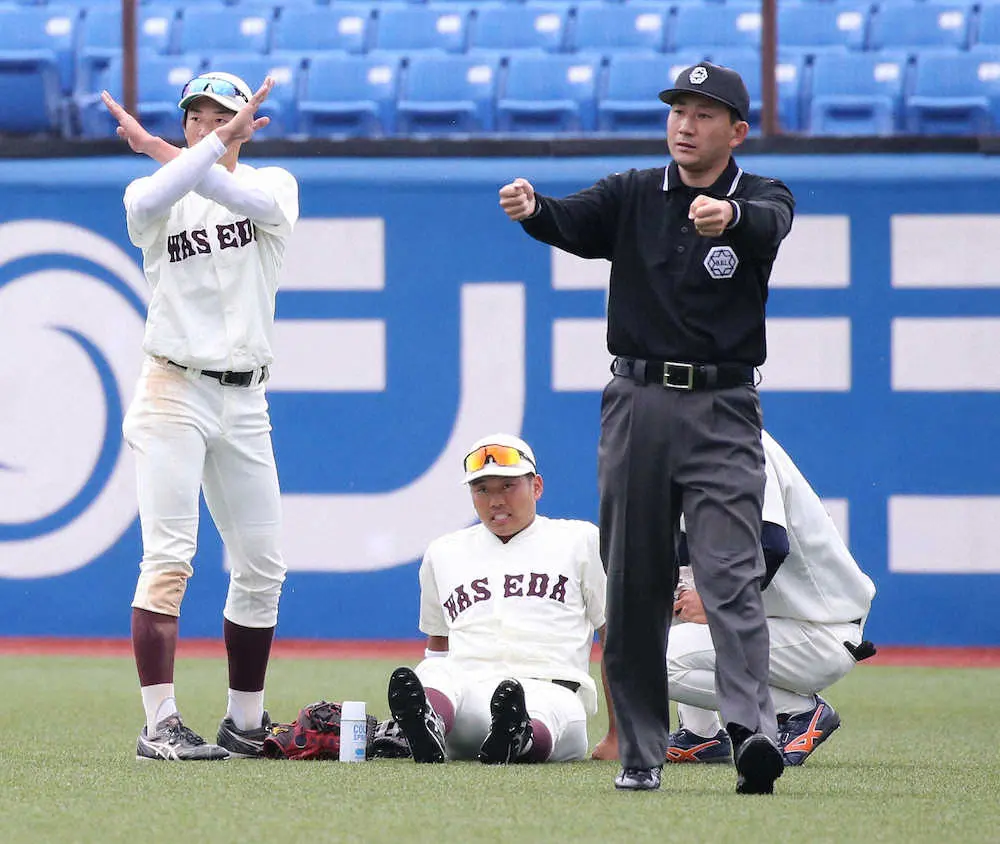早大・蛭間が左膝負傷交代 大飛球追ってフェンス激突、救急車で搬送