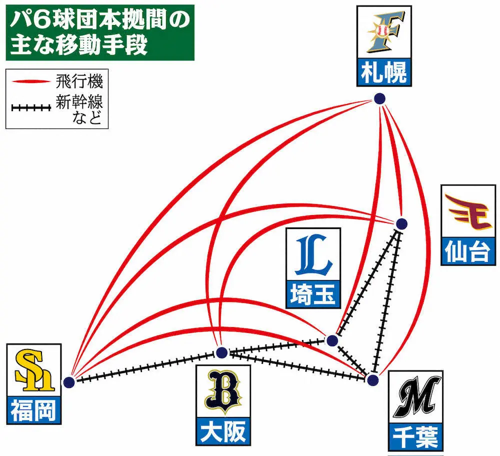北海道から九州まで…空路多いパ・リーグは“分散”難しく移動に課題