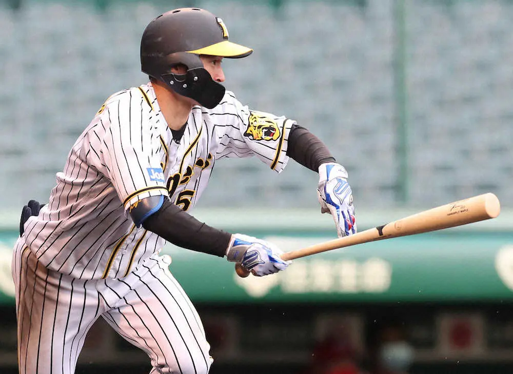 0―1の3回。先頭で野村のチェンジアップを中前打すると、続く糸原の打席で二盗に成功。「結果的にセーフになってよかった」。4月14日広島戦以来、14試合ぶりの6盗塁目で得点圏に進むと、マルテの中前打で同点のホームを踏んだ。