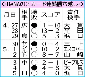 <中・D>7回、代打・桑原の勝ち越し2点適時打で生還した牧(左)を迎える三浦監督(撮影・椎名 航) Photo by スポニチ DeNA・三浦監督 代打策ズバリ!2者連続代打で全4打点 3カード連続勝ち越し ギャラリーで見る この記事のフォト 2021年05月06日の画像一覧 もっと見る 2021年05月06日の画像をもっと見る