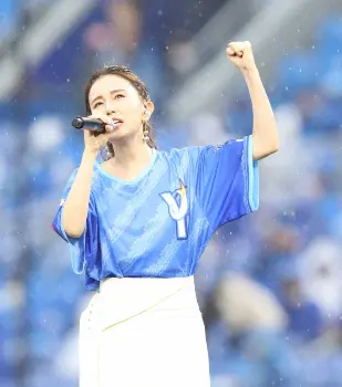 あいにくの雨天となったが、試合前に球場に渡り響いた美声にスタンドからは大きな拍手が送られていた。