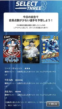 活躍選手を予想する「SELECT THREE(セレクトスリー)」 記者もハマった 西武のデジタルカード コレクションアプリ ギャラリーで見る この記事のフォト 2021年05月09日の画像一覧 もっと見る 2021年05月09日の画像をもっと見る