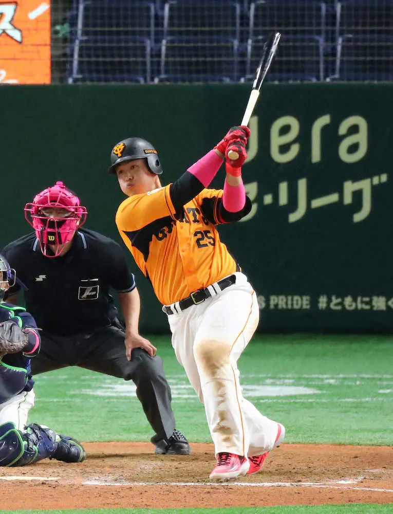 巨人は3―5と逆転されて迎えた8回に主砲・岡本和がマクガフから7戦ぶり一発となる6号ソロを放って1点差。9回には1死一、二塁で打席に入った岡本和がヤクルト守護神・石山のスライダーを右翼スタンドに叩き込む逆転サヨナラ3ランを放ち、劇的な勝利を飾った。