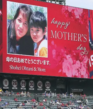 「母の日」の打者出場はメジャーで初。大谷はピンク色のバットやスパイクでプレーした。世界基準の高い身体能力は社会人野球の三菱重工横浜でプレーした父・徹さんだけでなく、元実業団のバドミントン選手で国体決勝でバルセロナ五輪日本代表の陣内貴美子と対戦経験もある母・加代子さんからも受け継いでいる。この日は幼い頃に撮った母とのツーショット写真が球場の大型ビジョンやテレビ中継で紹介された。