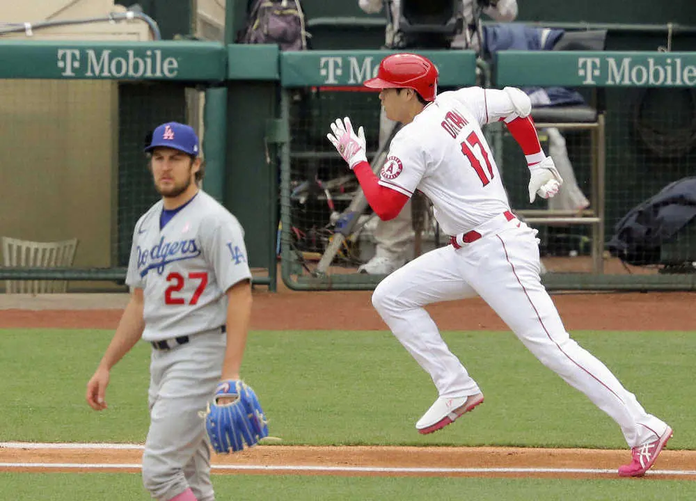 エンゼルスの大谷翔平投手(26)が9日(日本時間10日)、ドジャース戦で昨季サイ・ヤング賞トレバー・バウアー投手(30)と初対戦。初回に今季全体5位相当の一塁到達スピードで遊撃内野安打をマークした。3回は四球で出塁して逆転のホームを踏んで勝利に貢献。米国での「母の日」に、母・加代子さん(57)譲りの高い運動能力を発揮した。