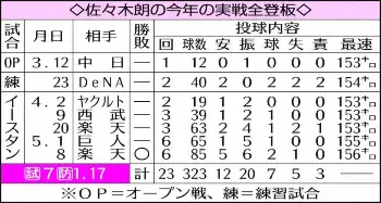 怪物たるがゆえの誤算もあった。1軍昇格の目安に「100球」もあったが、軽く投げて150キロ以上を制球良く投げたため、1日の巨人戦では6回を65球、8日の楽天戦でも6回を85球で終える形となってしまった。現時点で100球は未知の領域。球数が増えた時に、どんな投球を見せるかも注目だ。