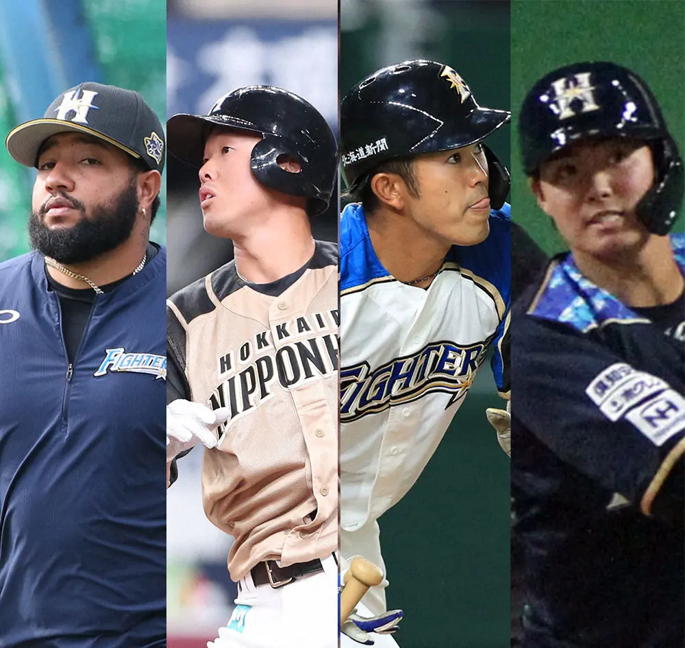 1日にPCR検査で陽性判定が下った日本ハムの(左から)ロニー・ロドリゲス内野手、高浜祐仁内野手、今川優馬外野手、郡拓也捕手