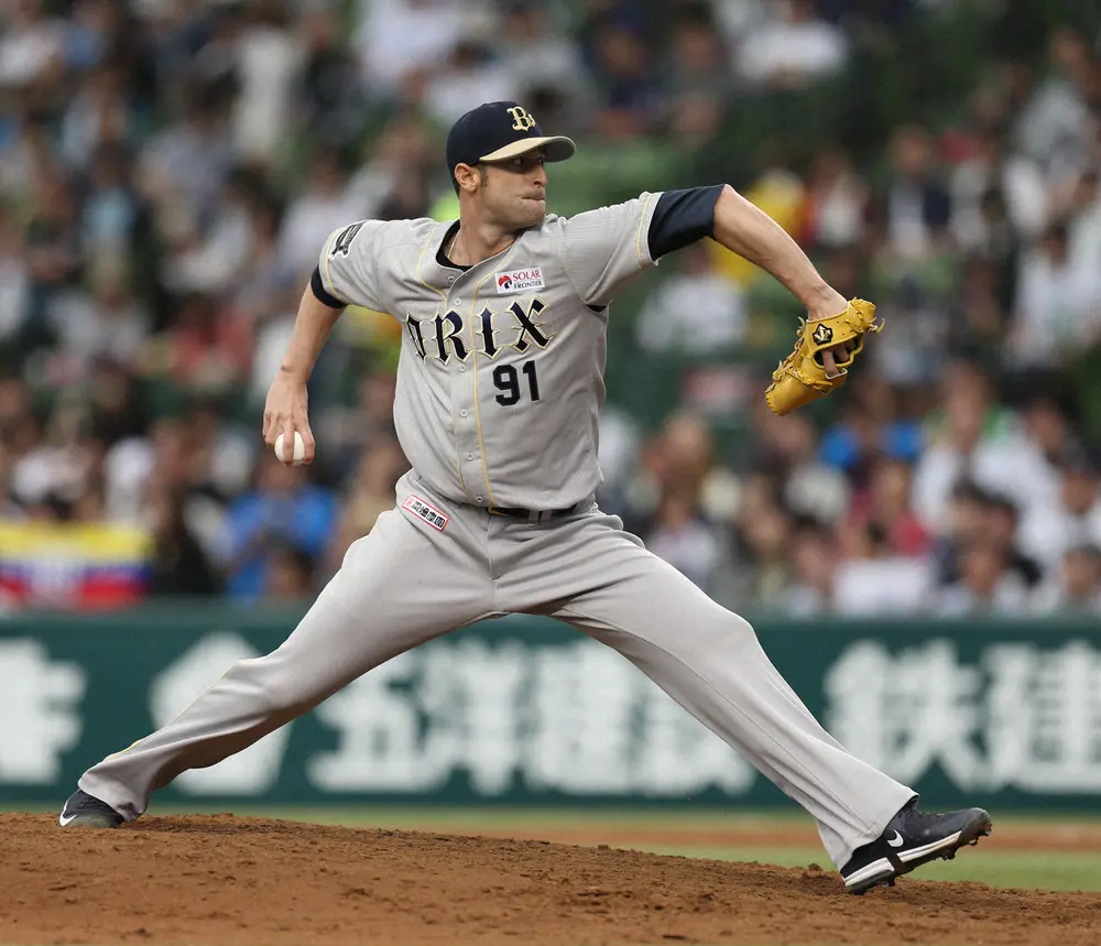 オリックスでは15年までプレー。96試合で14勝11敗1セーブ、防御率3・44の成績を残した。