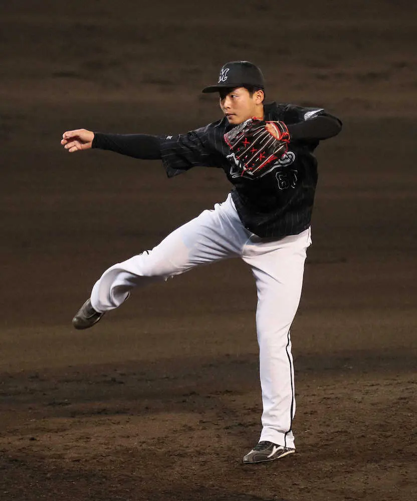 佐々木朗の同期で昨季のドラフト4位。2軍で11試合で防御率0・00と結果を残して1軍切符をつかんだ右腕は「中軸に挑戦できたのはいい経験」と手応えをにじませた。井口監督も「次も楽しみ。勝ちパターンで投げる投手に」と期待した。