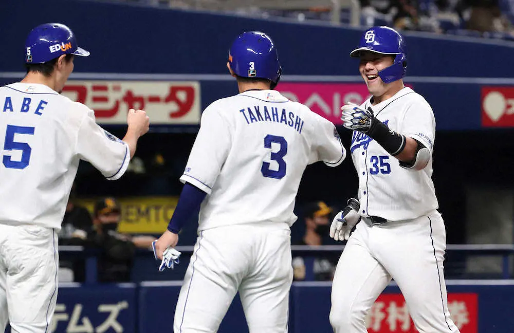 一振りで試合を振り出しに戻した。中日・木下拓が3点を追う4回に同点の5号3ラン。笠谷の145キロ直球をジャストミートし、左翼席へ運んだ。