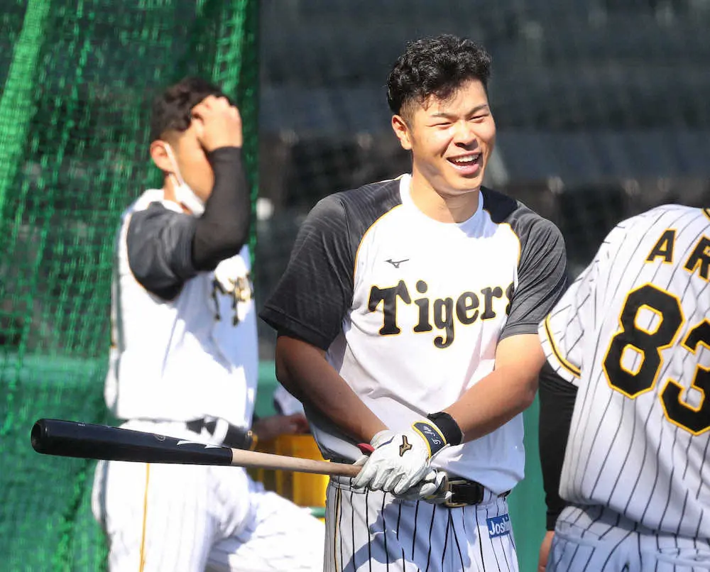 超人サトテル現る!?正体は転ばぬ先の走塁ガード 阪神・佐藤輝も流行アイテム着用