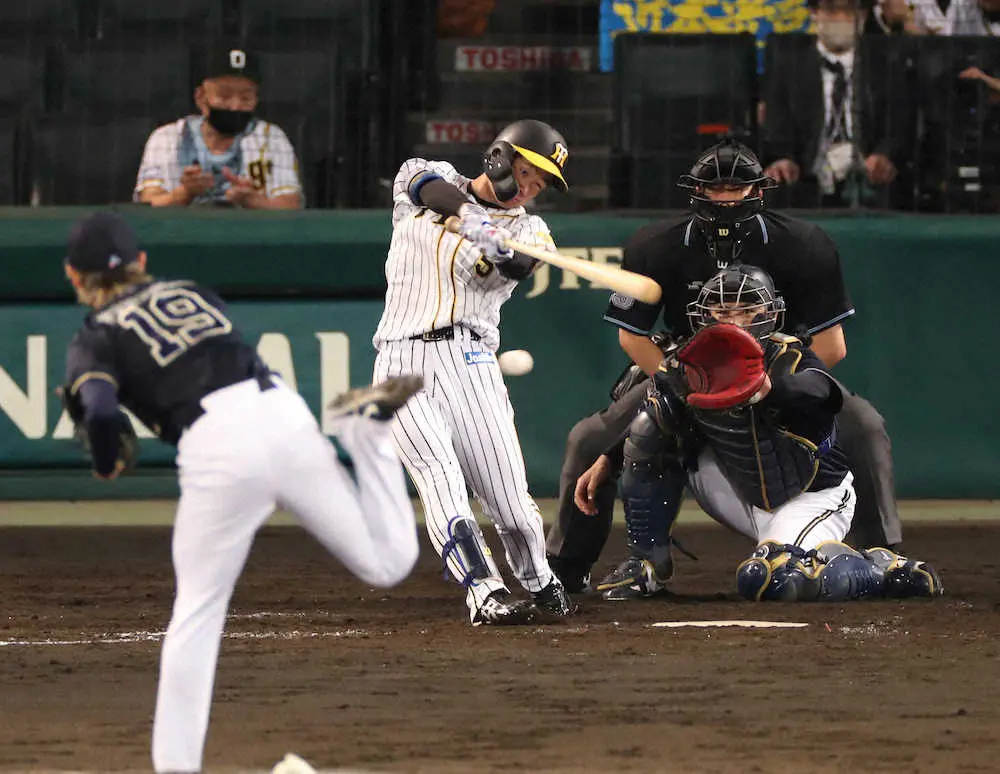 先頭のサンズが四球を選ぶと、1死から梅野が左前打。続く木浪は見逃し三振に倒れたものの、2死一、二塁から西勇が山岡のカットボールを捉え、三塁線への適時二塁打で1点を返した。なおも2死二、三塁からは近本に右前適時打が飛び出し、少ない好機で得点につなげた。