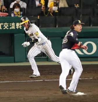 阪神・中野、気迫の本塁突入!「ヘディング」先制生還で前夜エラーの汚名返上