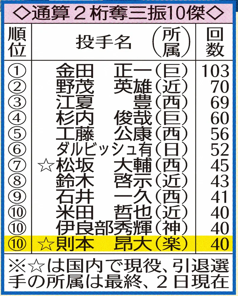 <ヤ・楽>力投する則本昂(撮影・村上 大輔) Photo by スポニチ 楽天 則本10K5勝で首位タイ再浮上!!40度目2桁奪三振は歴代10位タイ ギャラリーで見る この記事のフォト 2021年06月03日の画像一覧 もっと見る 2021年06月03日の画像をもっと見る