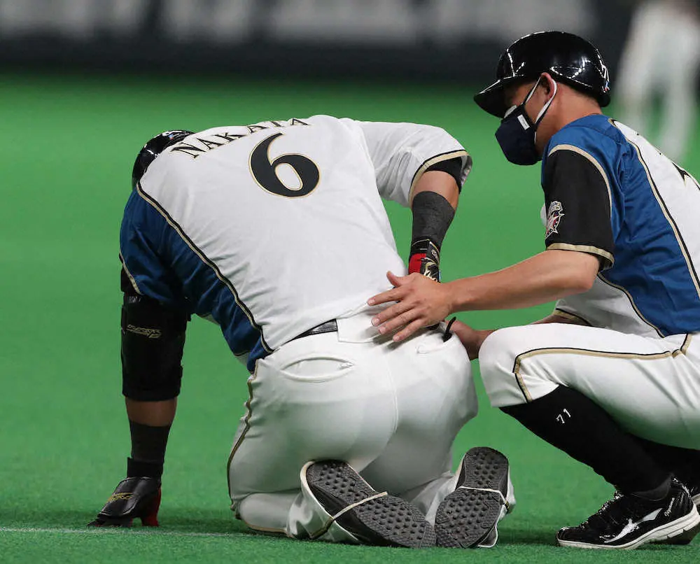 <日・神(1)>3回1死満塁、中田(右)は三ゴロで一塁に駆け込んだ後にうずくまる(撮影・椎名 航) Photo by スポニチ 日本ハム・中田もアクシデント 一塁への走塁で右腰押さえ倒れこむ 担架… ギャラリーで見る この記事のフォト 2021年06月08日の画像一覧 もっと見る 2021年06月08日の画像をもっと見る
